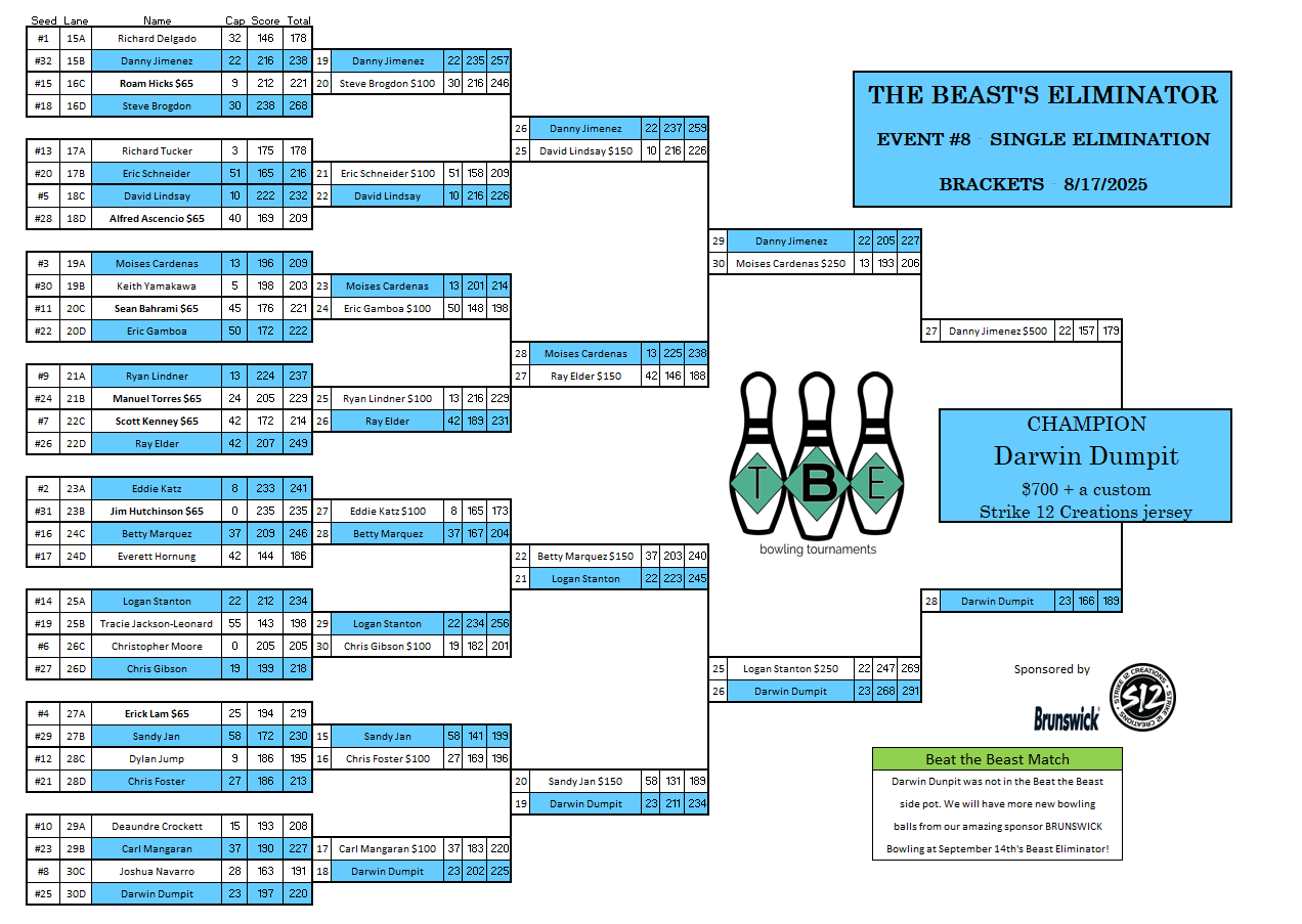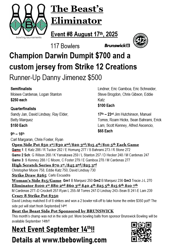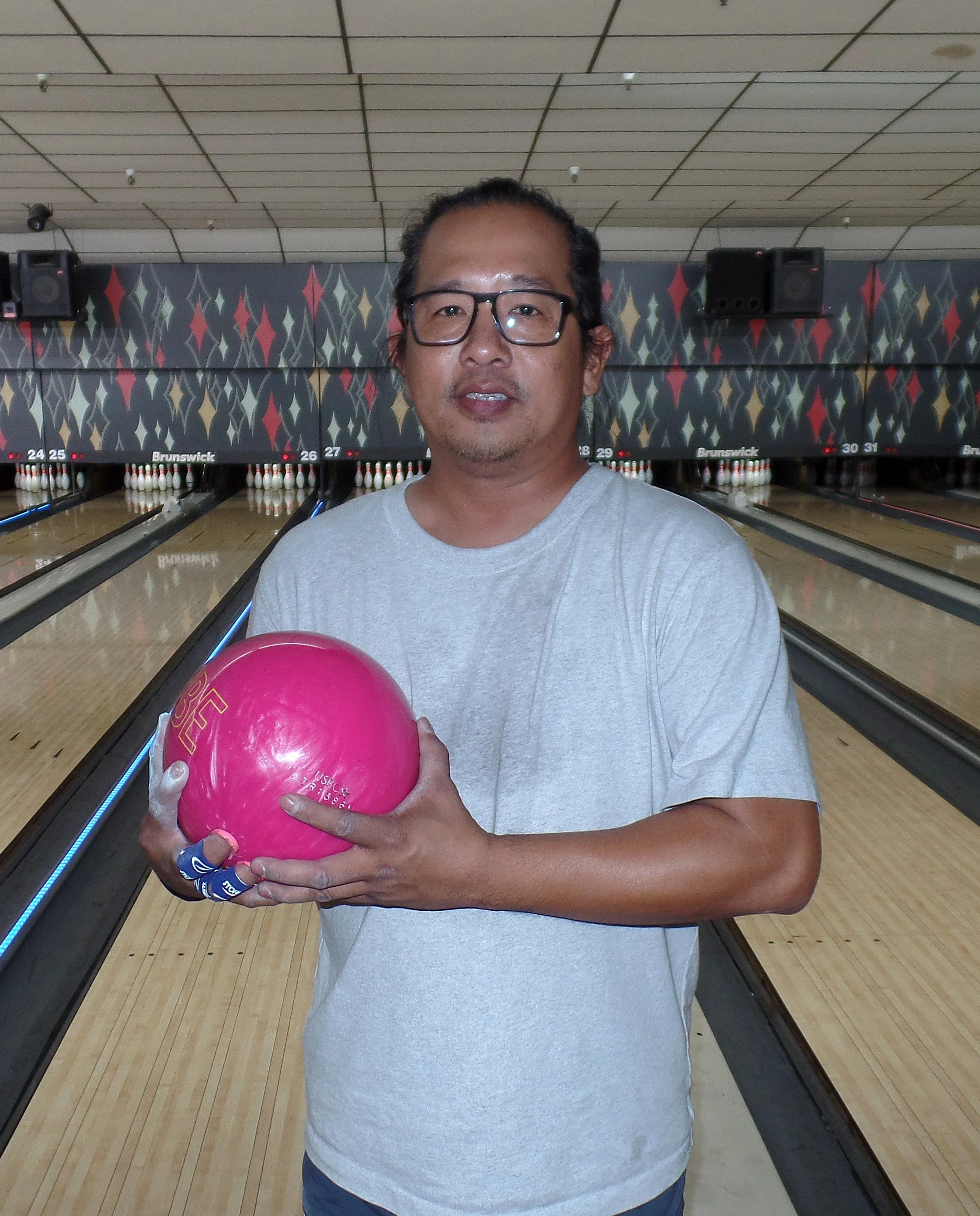 August’s Eliminator champion, Darwin Dumpit with his Hammer Bubblegum Vibe Bowling ball