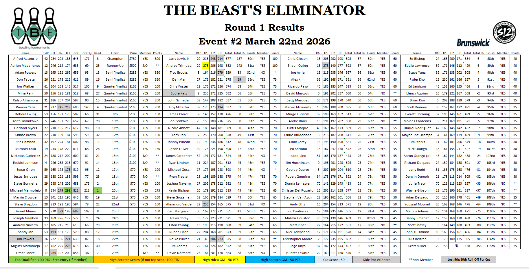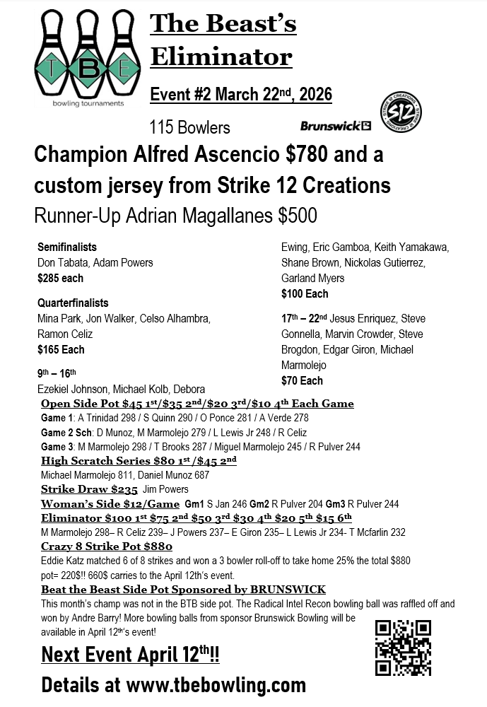 115 bowlers take to the lanes in today’s beast eliminator
