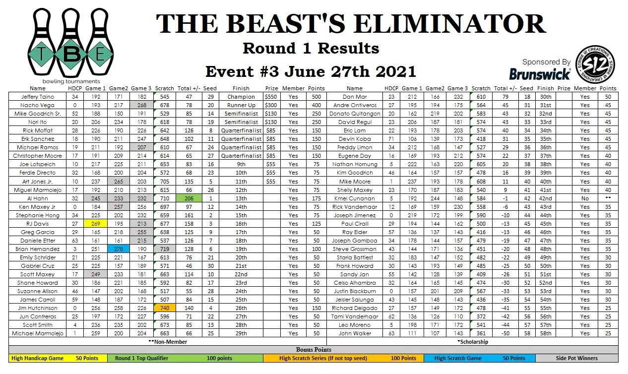 thank you as always to sponsors strike 12 creations and brunswick bowling for providing tournament bowlers with the best bowling balls and Apparel around.