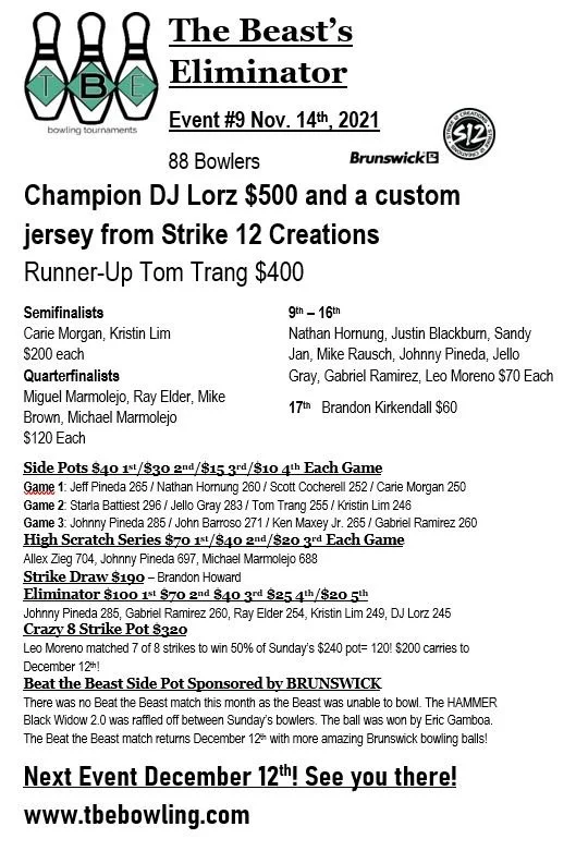 With the beast unable to roll in the beat the beast match, we raffled off the hammer black widow 2.0 for free to all the bowlers. the ball was won by october’s champion eric gamboa.